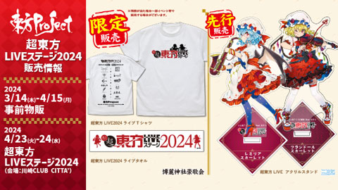3/14(木)午後6時~事前通販開始!『超東方LIVEステージ2024 [4/23(火),24(水)開催]』限定「ライブTシャツ」などグッズ情報公開!