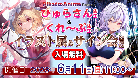 【ピカットアニメ】ひゅらさん先生&くれ~ぷ先生「イラスト展&サイン会」当日販売ラインナップ公開!
