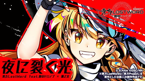 弾幕RPG「東方LostWord」MVプロジェクト 東方LostWord feat. 影山ヒロノブ × 豚乙女「夜に裂く光」フルVer.を公開!