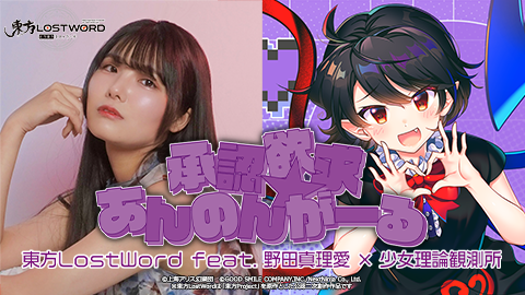 「東方LostWord」最新MV楽曲 東方LostWord feat.野田真理愛 × 少女理論観測所による平安のエイリアンのアレンジ「承認欲求☆あんのんがーる」を発表!