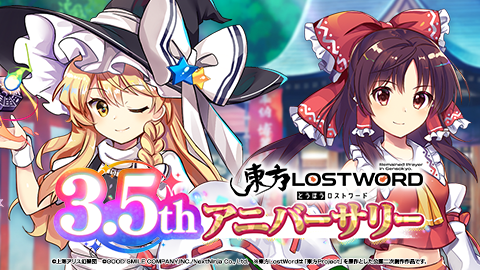 東方Project公認二次創作スマートフォン向け弾幕RPG「東方LostWord」3.5thアニバーサリーのイベント・キャンペーンを実施!