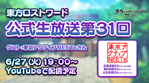 「東方LostWord」公式生放送 音楽サークル『東京アクティブNEETs』をゲストに迎え 6月27日に生配信
