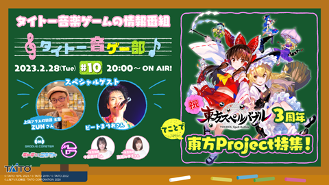 東方Projectスペシャル放送♪「タイトー音ゲー部#10」2月28日(火)20:00より生配信!