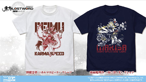 【二次元コスパ】『東方LostWord』博麗霊夢 <カルマスピード>/霧雨魔理沙 <夜に裂く光>各「Tシャツ」が登場!2/28(土)~イベント先行販売も!