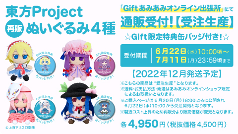 【Gift】東方ぬいぐるみシリーズ4種再販!