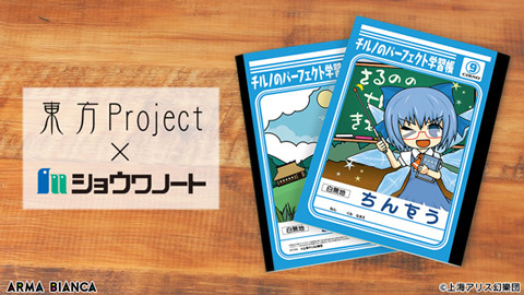 『東方Project』と「ショウワノート」のコラボ商品「ショウワノートコラボ チルノのパーフェクト学習帳」の受注を開始!!アニメ・漫画のコラボグッズを販売する「ARMA BIANCA」にて