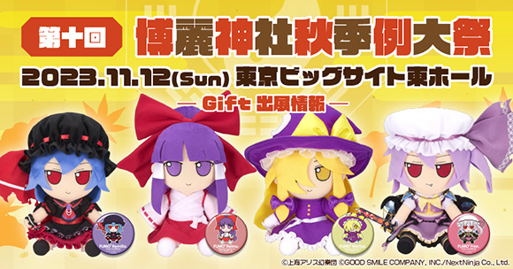 グッズ / イベント Twitter Twitter Facebook Line 2023.10.16 Gift 【Gift】「第十回博麗神社秋季例大祭」にGiftも出展! 「第十回博麗神社秋季例大祭」にGiftも出展します! 新作ふもふもぬいぐるみ40cm&20cm、新作ミニぬいぐるみを販売予定! ぜひ足をお運びください! 特設サイトはコチラ!
