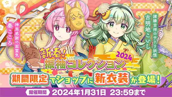 1月1日(祝)0:00~1月31日(水)23:59の期間限定で振袖衣装が登場!衣装にはゲーム内イベントのイベントポイントがアップする効果も追加されています。