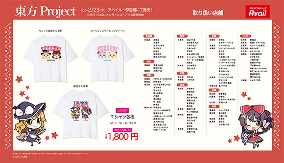 「東方Project」人気デザインTシャツがアベイル一部店舗&オンラインストアに登場!