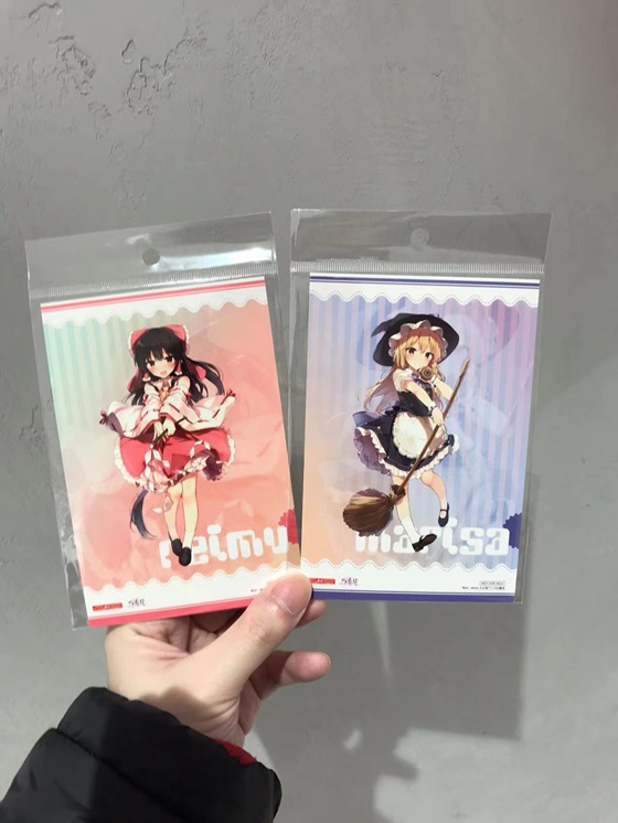 We plan to distribute 2 patterned postcards using illustrations of Hakurei Reimu and Kirisame Marisa designed by illustrator shnva.