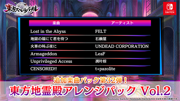「東方地霊殿アレンジパック Vol.2」は、凋叶棕の「Unprivileged Access」やFELTの「Lost in the Abyss」などの人気楽曲をはじめ、過去最高難易度曲としてLeaFの「Armageddon」などを収録。