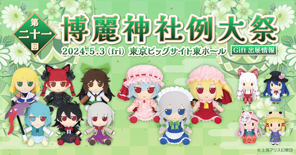 イベント Twitter Twitter Facebook Line 2024.04.09 Gift 【Gift】「第二十一回博麗神社例大祭」にGiftも出展! 「第二十一回博麗神社例大祭」にGiftも出展します! 新作ふもふもぬいぐるみ40cm&20cm、新作ミニぬいぐるみを販売予定! ぜひ足をお運びください! 特設サイトはコチラ!