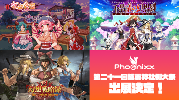 【Phoenixx】例大祭出展情報!大注目の東方ファンゲーム3タイトル試遊出展&グッズ販売決定!!