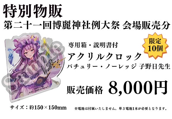 ・専用箱・説明書付【アクリルクロック】パチュリー・ノーレッジ/子野日先生