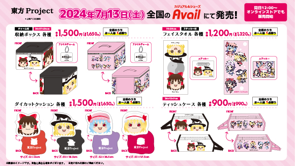 アベイル より7/13(土)~【東方Project 】グッズが発売!!