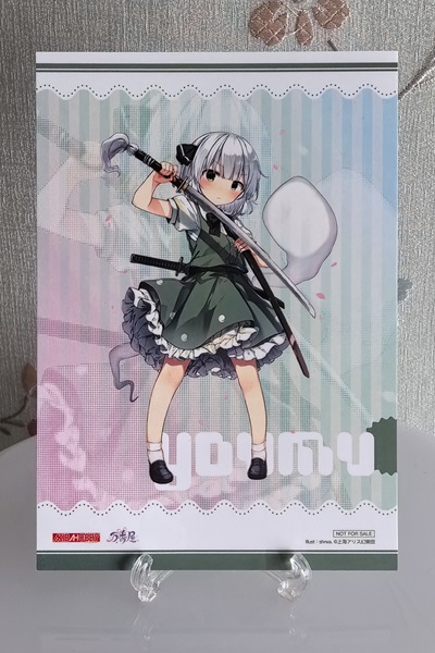 This time, we plan to distribute the patterned postcards themed with the illustration of Konpaku Youmu !