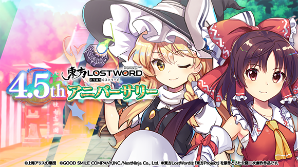 株式会社グッドスマイルカンパニーと株式会社NextNinjaの共同プロジェクトである、東方Project公認二次創作スマートフォン向けRPG『東方LostWord(とうほうロストワード)』が、2024年10月30日(水)に4.5thアニバーサリーを迎えることをお知らせします。