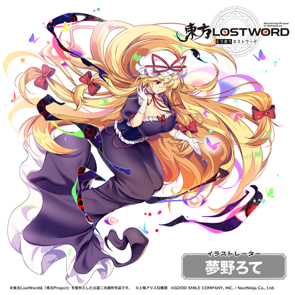 東方LostWord MVプロジェクトでは、キャラクターデザインを手掛ける「夢野ろて」がMVプロジェクト用に新規で描き下ろしたイラストを作成しており、各楽曲のMVに登場します。今回は「八雲紫」の描き下ろしイラストを公開します。