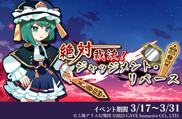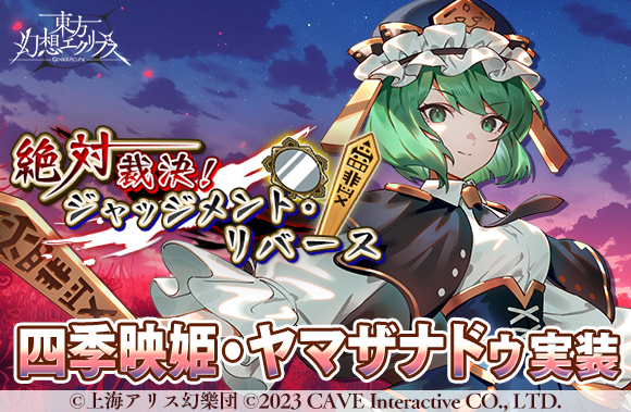 株式会社ケイブが配信中のシューティングゲームアプリ『東方幻想エクリプス』(『ゲンリプ』)が、2025年3月17日(月)よりイベント『絶対裁決!ジャッジメント・リバース』を開催、さらに新キャラクター[楽園の最高裁判長]四季映姫・ヤマザナドゥが登場する願掛けを開始いたしました。