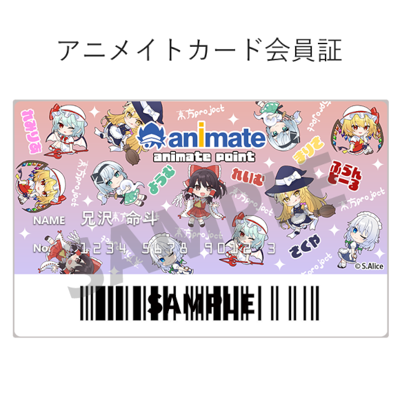 お手持ちのアニメイトアプリの会員証画面を、「東方Project」のデザインにきせかえできます。