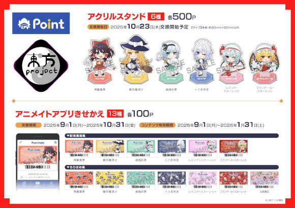 「東方Project」アニメイトポイント交換景品のご案内