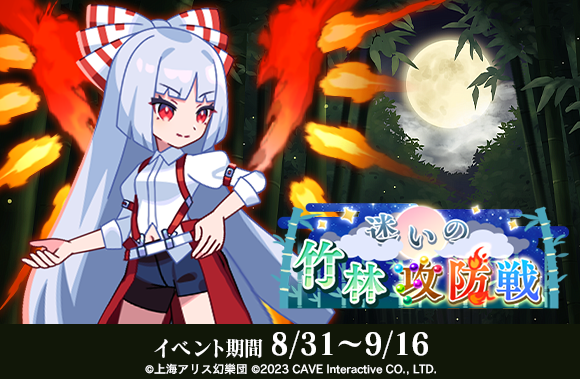 株式会社ケイブ(本社:東京都目黒区、代表取締役社長:高橋祐希、証券コード:3760)が配信中のシューティングゲームアプリ『東方幻想エクリプス』(『ゲンリプ』)におきまして、8月31日(日)より新イベント『迷いの竹林攻防戦』を開催いたしました。さらに、新キャラクター[蓬莱の人の形]藤原妹紅と、新★5想起カード「月光の牢獄」が登場する願掛けも開始いたしました。