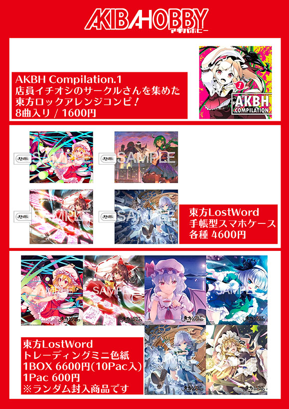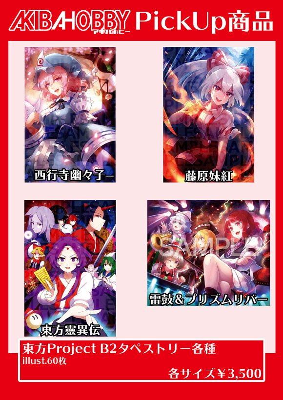 そしてアキバホビーからも、東方Projectの新作キャラクターアクリルキーホルダーやタペストリー、部屋着にも使えるTシャツなど色々盛りだくさんのアイテムでお待ちしております!