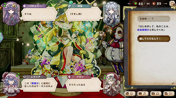 レミリア・フランドール・咲夜・パチュリーの4人が好き勝手に意見した内容が選択肢になることがあります。彼女たちの意見を積極的に採用することで、強力なダイスが手に入ることがあります。
