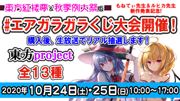ピカットアニメ 『秋季例大祭&東方紅楼夢に来れなかった人のため』のエアガラガラくじ大会開催!
