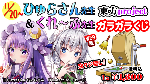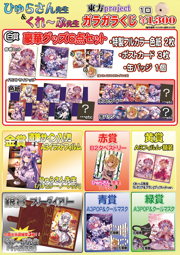 今回は東方Project『ひゅらさん先生&くれ~ぷ先生』ガラガラくじ!