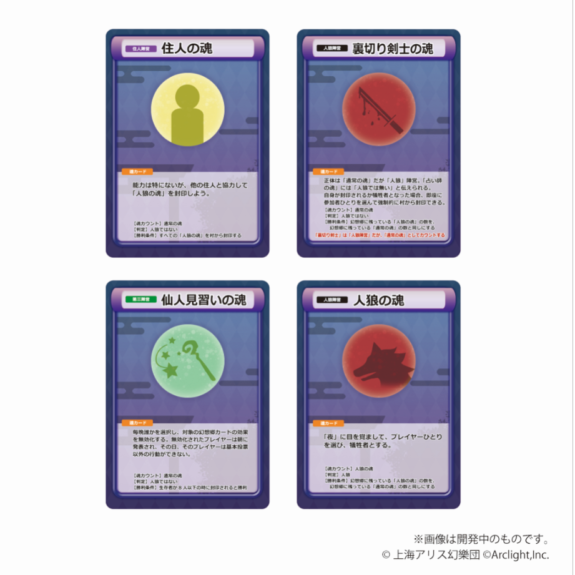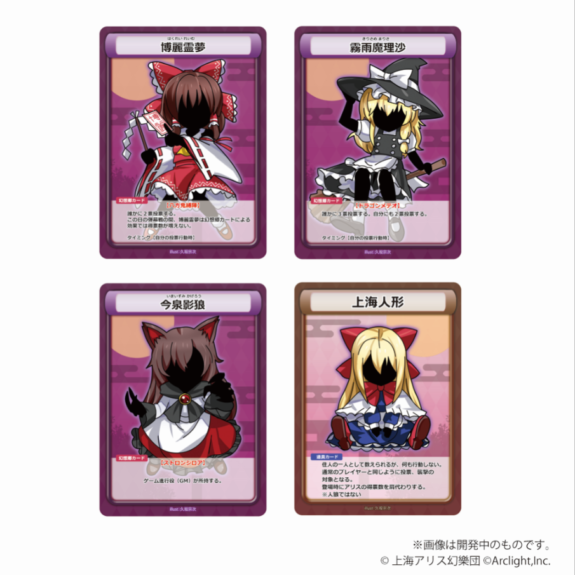 占い師などの通常の役職に加えて、特殊能力を持つ霊夢や魔理沙をはじめとした23枚の「幻想郷カード」を収録。