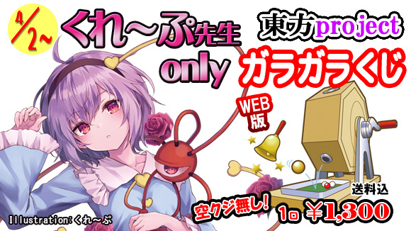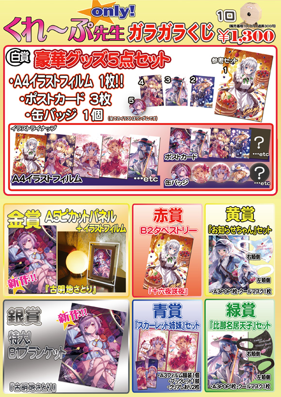 今回は東方Project『くれ~ぷ先生only』ガラガラくじ!