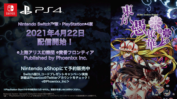 【東方憑依華 〜 Antinomy of Common Flowers.】Switch版の予約が4/8より開催中!4/22の発売に先駆けフォロー&リツイートキャンペーンも開催!