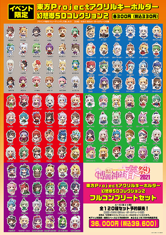 協 力:アトレ秋葉原/博麗神社社務所/アキバホビー/アークライト/AQUA STYLE/AMNIBUS/A3/GIFT/キューズQ/グッドスマイルカンパニー/コスパ/ジーストア/執事眼鏡eyemirror/中外鉱業株式会社/Tファンサイト/東方ステーション/東方LostWord/とらのあな/ブシロード/Play,Doujin!/ベルファイン/ムービック/メディアスケープ/メロンブックス/Y Line/参加サークル各位(順不同敬称略) ※2021年4月段階
