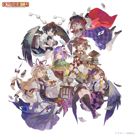射命丸文、姫海棠はたて、本居小鈴、稗田阿求、宇佐見菫子、八雲紫のイラストを描いていただきました。