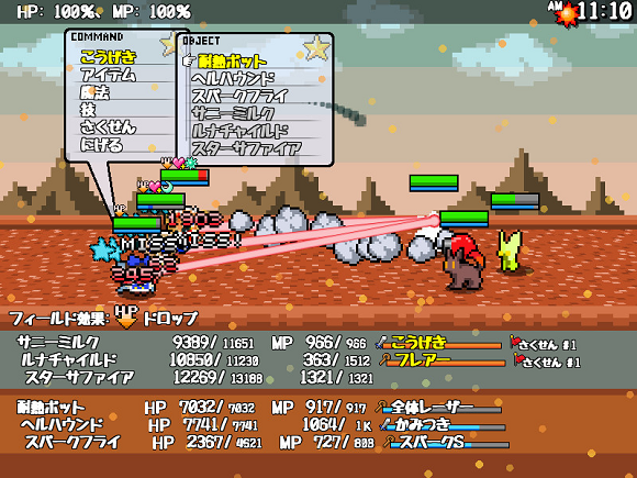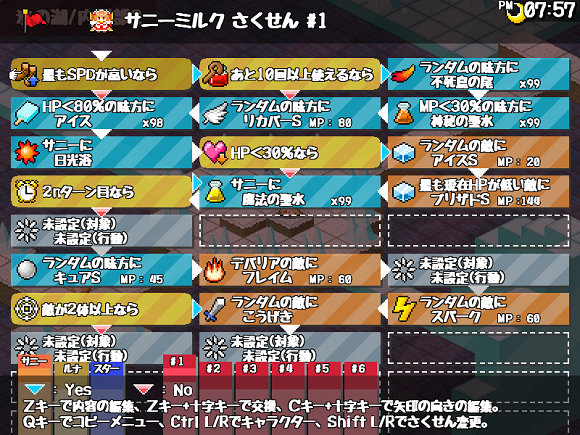 「どのような状況で」→「誰に」→「何をするか」という“さくせん”をあらかじめ組むことで、それに従って三妖精は自動で戦ってくれます。頭の弱い三妖精の代わりに戦況に応じた綿密な“さくせん”を組んで、戦闘をサクサク楽しく進めましょう。