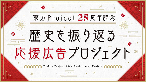 「東方Project」の25周年の歴史を全国のファンの皆様とお祝いする企画が遂にスタートです!長きに渡り東方を愛してきたファンの皆様も、最近東方を知ったファンの皆様も全員が一体となって楽しめるようなファンの皆様参加型の「応援広告企画」となっております。