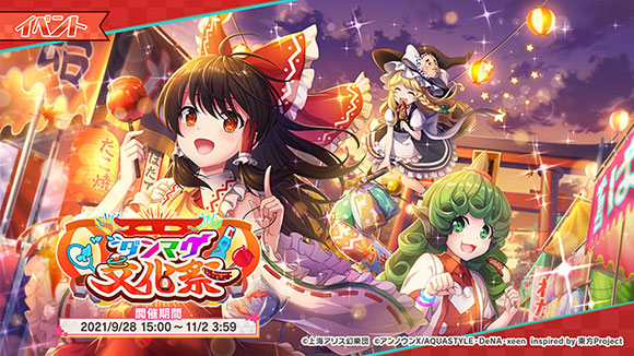 「ダンマクカグラ」や「おでかけ」を行って「奉納チケット」を集めることで、専用ショップでSSRミタマカード「 [いざ!ダンマク文化祭!] 博麗 霊夢」など好きなアイテムと交換することができます。