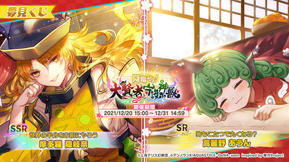 SSRミタマカード「[世界の半分をお前にやろう]摩多羅 隠岐奈」、SRミタマカード「[狗もこたつで丸くなる?]高麗野 あうん」が登場!