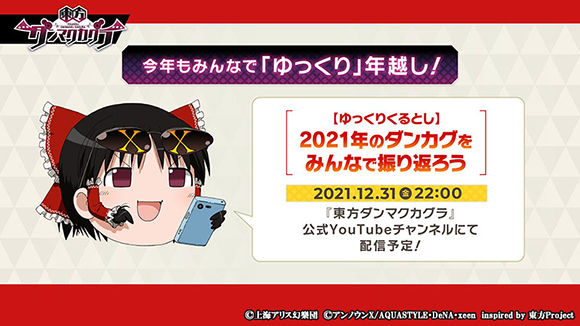 2021年12月31日(金)22:00から、YouTubeの『東方ダンマクカグラ』公式チャンネルで、「【ゆっくりくるとし】2021年のダンカグをみんなで振り返ろう」を配信します!