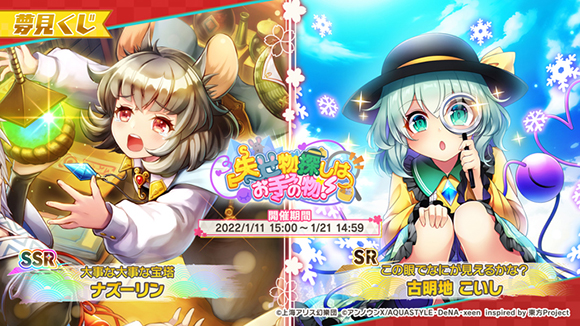 SSRミタマカード「[大事な大事な宝塔]ナズーリン」、SRミタマカード「[この眼でなにが見えるかな?] 古明地 こいし」が登場!