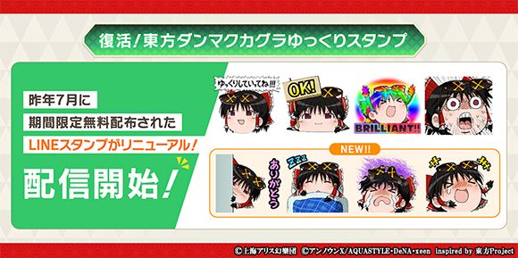2022年3月9日(水)に、LINEスタンプ「復活!東方ダンマクカグラゆっくりスタンプ」の販売を開始しました!