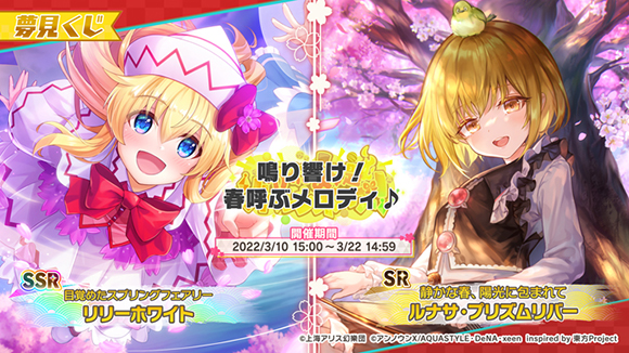 SSRミタマカード「[目覚めたスプリングフェアリー]リリーホワイト」、SRミタマカード「[静かな春、陽光に包まれて]ルナサ・プリズムリバー」が登場!