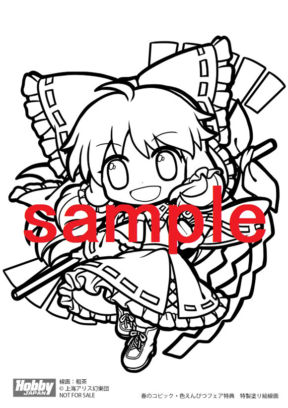 HJのコピック・色えんぴつ関連の技法書、いずれか一冊以上ご購入頂いた方へ博麗霊夢ミニキャラ塗り絵用線画をプレゼントさせていただきます。