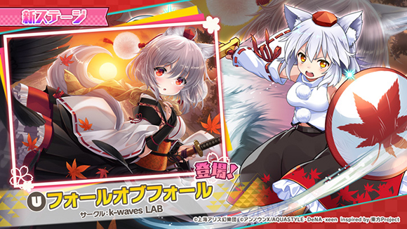 また、各ステージをAランク以上でクリアすると、選曲バナーで使用されたイラストのSRミタマカード「[フォールオブフォール]犬走 椛」がもらえます。