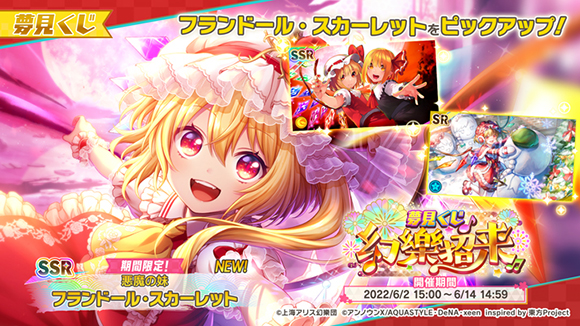 本夢見くじには、SSRミタマカード「[悪魔の妹]フランドール・スカーレット」が登場予定です。