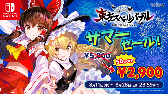 『東方スペルバブル』の本体ソフトがお得に購入できるサマーセール開催中!この機会にぜひ遊んでみてください!