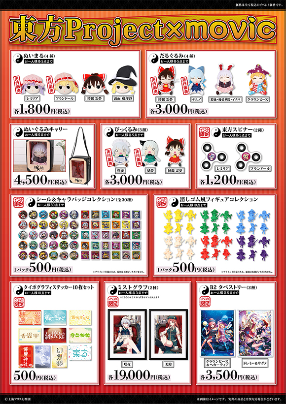 イベント限定の商品を揃えておりますので、東方Project ×movicブースに是非お立ち寄りください!!