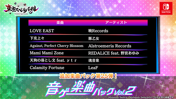 Nintendo Switch™ダウンロード専用ソフト「東方スペルバブル」の追加ダウンロードコンテンツ「音ゲー楽曲パックvol.2」を11月17日(木)より配信開始いたしました!