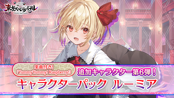 追加キャラクターの第6弾として、宵闇の妖怪「ルーミア」(CV:長縄まりあ)が登場!覚醒時にスペルチャージを減らせる「闇玉」を出現させる能力や3つの個性的なスペルカードで遊べるキャラクターです。さらに森羅万象の人気楽曲「YummyYummy! Raspberry!」も収録しています。